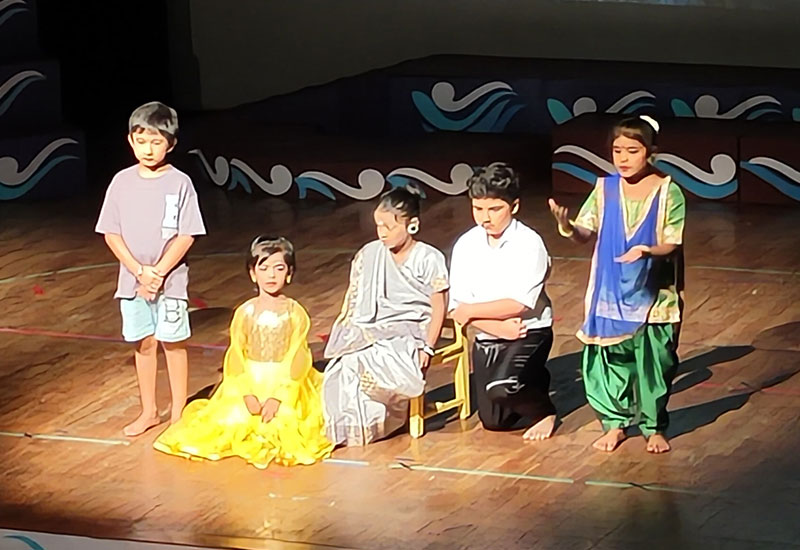 Class 2 students presented a vibrant performance on the theme "Rivers" - "Udgam Se Samagam" (From Origin to Confluence). The show featured: