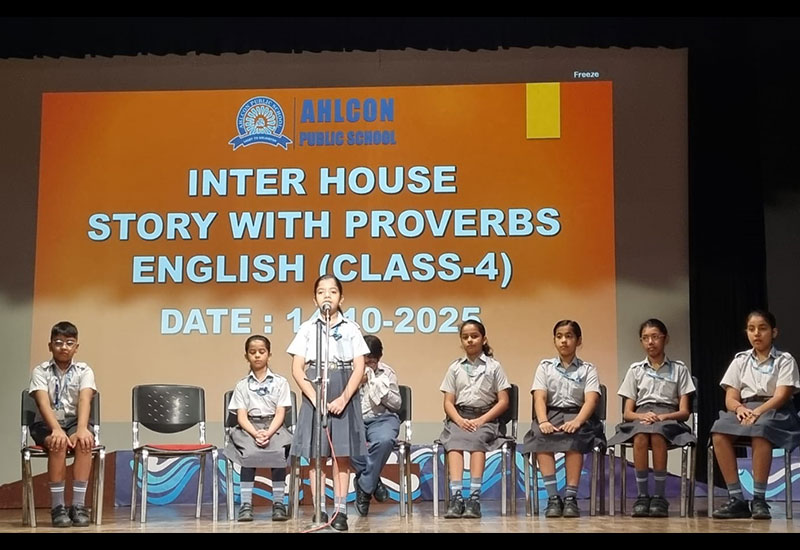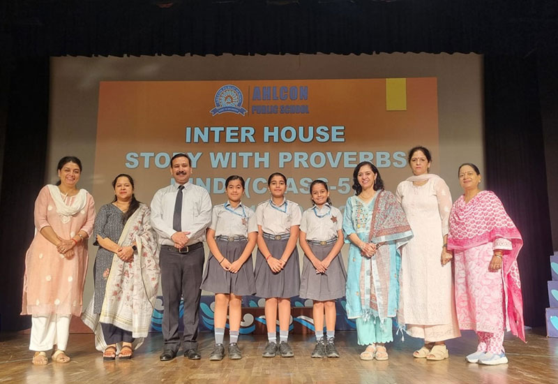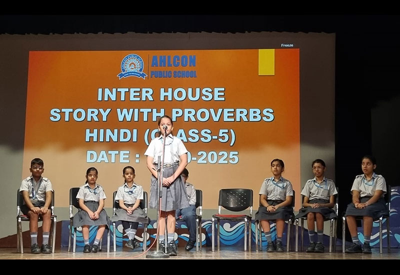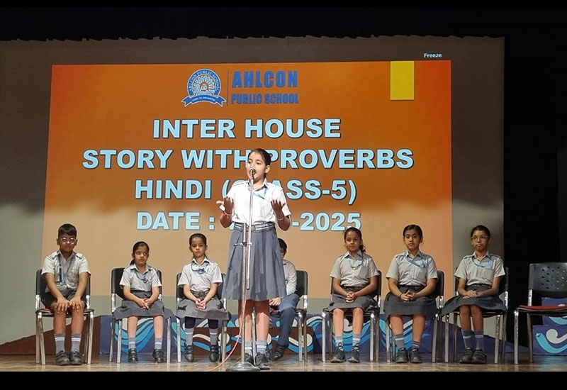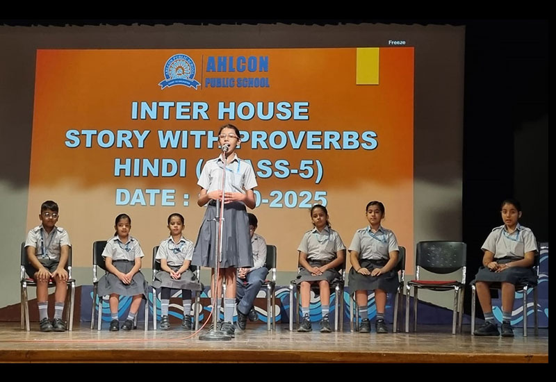 One participant from each house from Class IV narrated a story in English. One participant of each house from Class V narrated a story in Hindi.